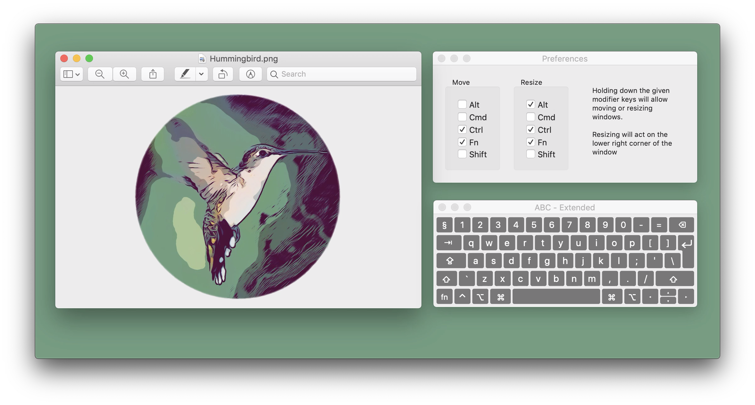 Easily move and resize windows. Hold modifier keys and drag the mouse to adjust size and position.